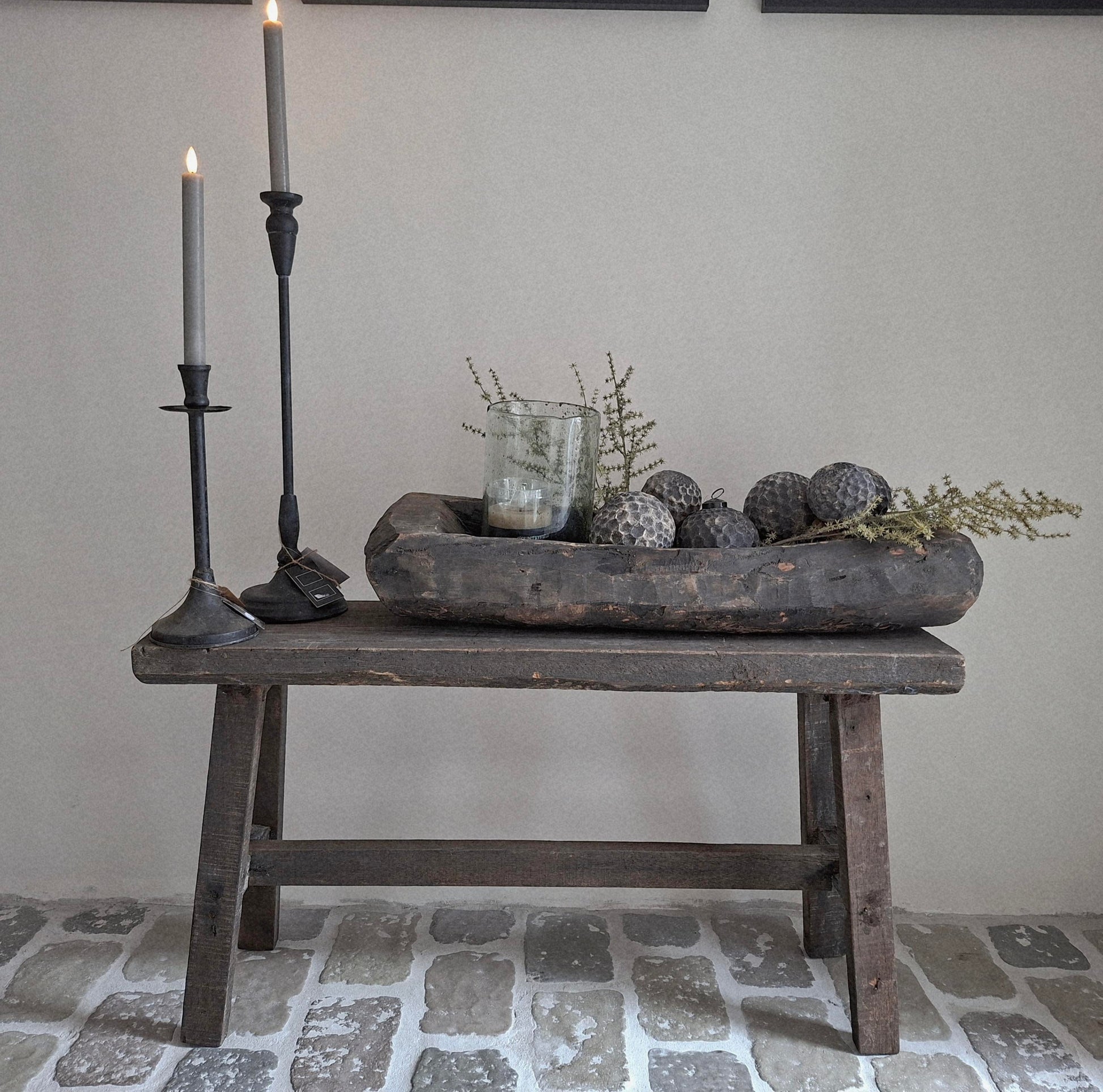 De Old Farm Bench van Aura Peeperkorn brengt de sfeer van een oud landhuis tot leven. Het doorleefde hout, de subtiele oneffenheden en de warme, donkergrijze afwerking maken elk bankje uniek. Geen enkel exemplaar is hetzelfde – precies wat deze collectie zo bijzonder maakt.