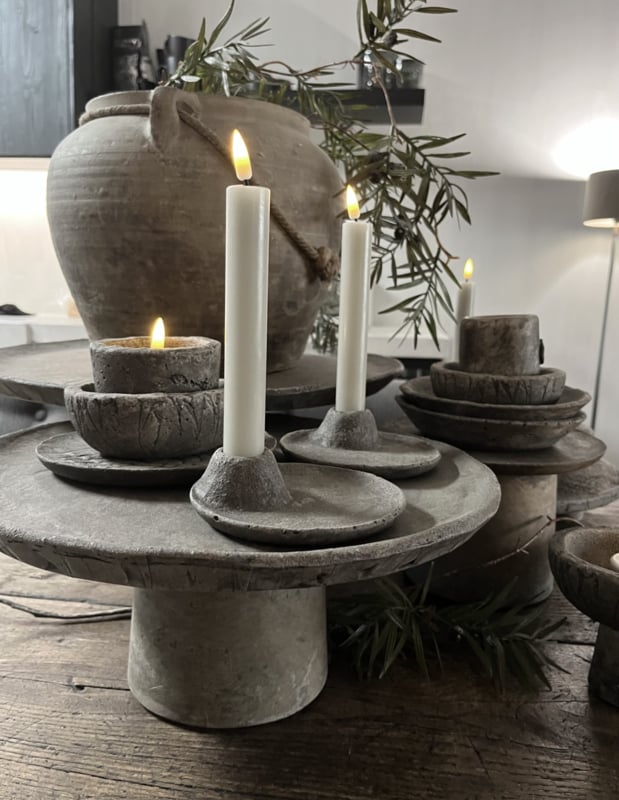 Handgemaakte kandelaar op schaal (blaker)van beton.