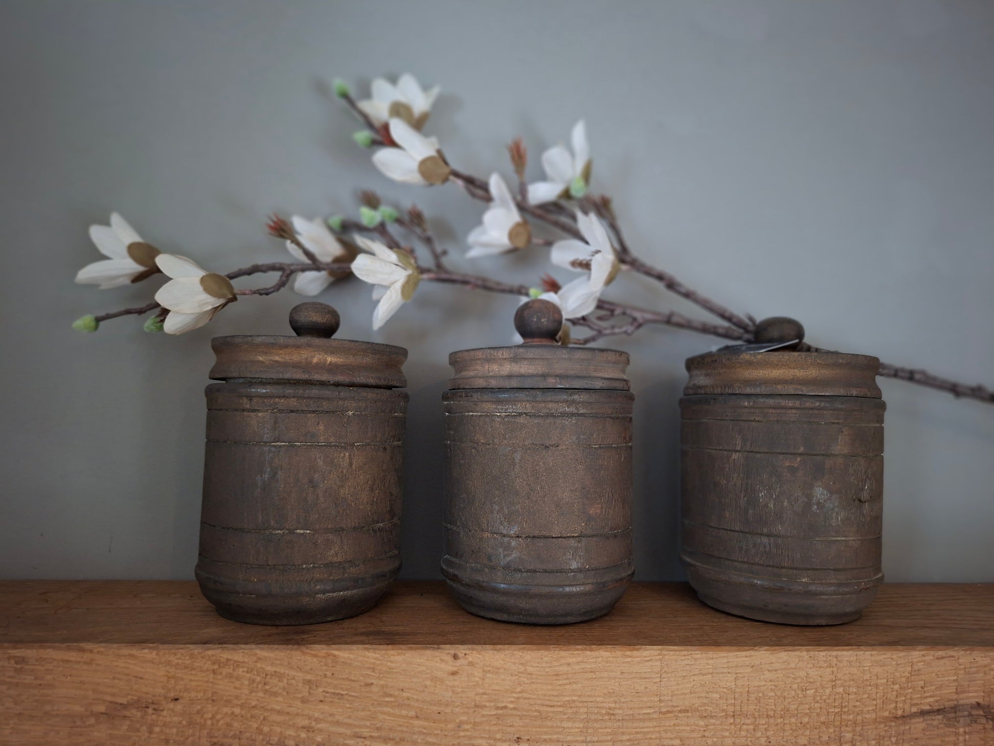 Deze magnolia tak brengt zachtheid en rust in huis. De elegante bloemvorm en natuurlijke uitstraling maken hem perfect voor een warm, landelijk interieur, het hele jaar door.